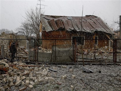 圖為俄羅斯占領的烏克蘭東部城市阿夫迪夫卡建築物被摧毀。(路透社)