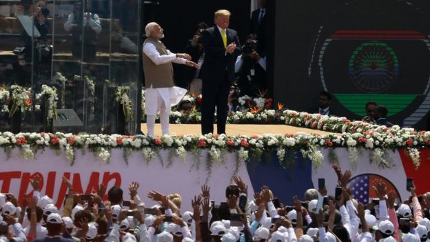 本周一,特朗普在莫迪总理陪同下,在印度西部城市艾赫迈达巴德(Ahmedabad)的板球场向10万人发表了演说。随后,特朗普夫妇继续飞往北部城市阿格拉(Agra),浏览著名的泰姬玛哈陵(Taj Mahal)。