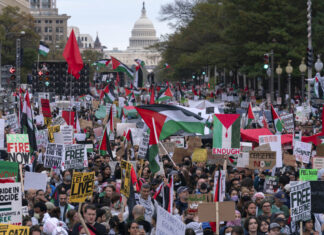 全球多處繼續有聲援巴勒斯坦人的示威。美國國...