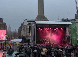 爱尔兰传统节日庆典—“圣帕特里克节”在伦敦特拉法加广场盛...
