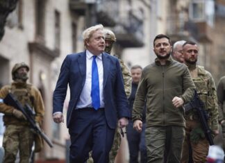 (中華新聞通訊社/中華時報4月10日訊)英國首相約翰遜突然到訪基輔,與烏克蘭總統澤連斯基一同漫步基輔街頭並會談,以表達對烏克蘭人民的支持。約翰遜表示,在烏國多座城鎮發現平民...