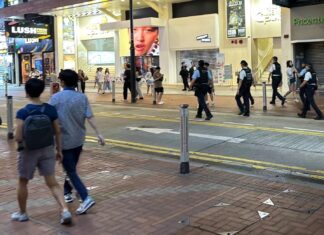 銅鑼灣之夜,警車警燈閃爍不休, 行人匆匆...