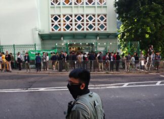 尖東科學館道仍然有近千人聚集,佔據馬路高叫口號,與...