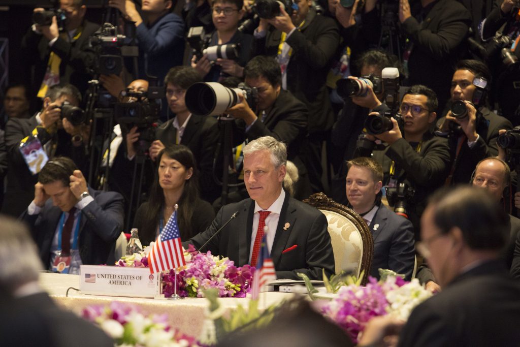 也许正是为了回应东盟各国对美国对亚洲事务是否重视的怀疑,罗伯特·奥布莱恩在峰会前出席印-太商务论坛活动时明确表示,美国坚定参与亚洲地区事务,全面履行在亚洲的承诺。奥布莱恩在随后的东盟-美国峰会上,也对7个成员国缺席表达不满。