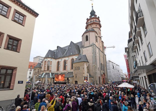 莱比锡圣尼古拉新教教堂,连续几年,牧师旺内伯格(Christoph Wonneberger)每周一的例行祷告会成为政治异见者的避风港。