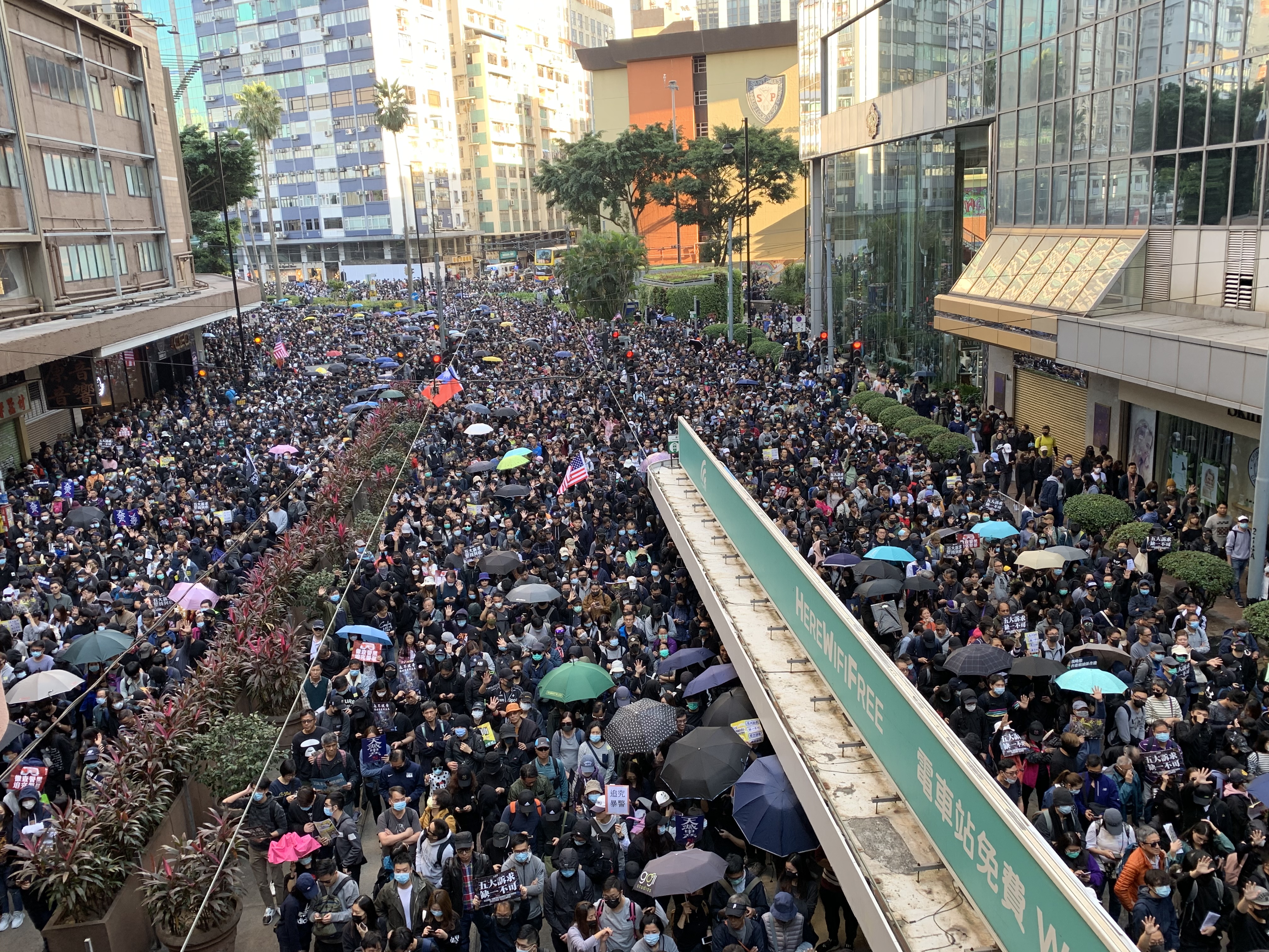 12月8日由香港民间团体发起的游行,有数以十万计市民参与,这是近四个多月以来首次获批准的民阵游行,也是区议会选举后首次获批准的大型游行。