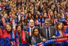 自由民主党领袖乔·斯温森在丈夫陪同下,走访格拉斯哥。投票站内不许拍照
