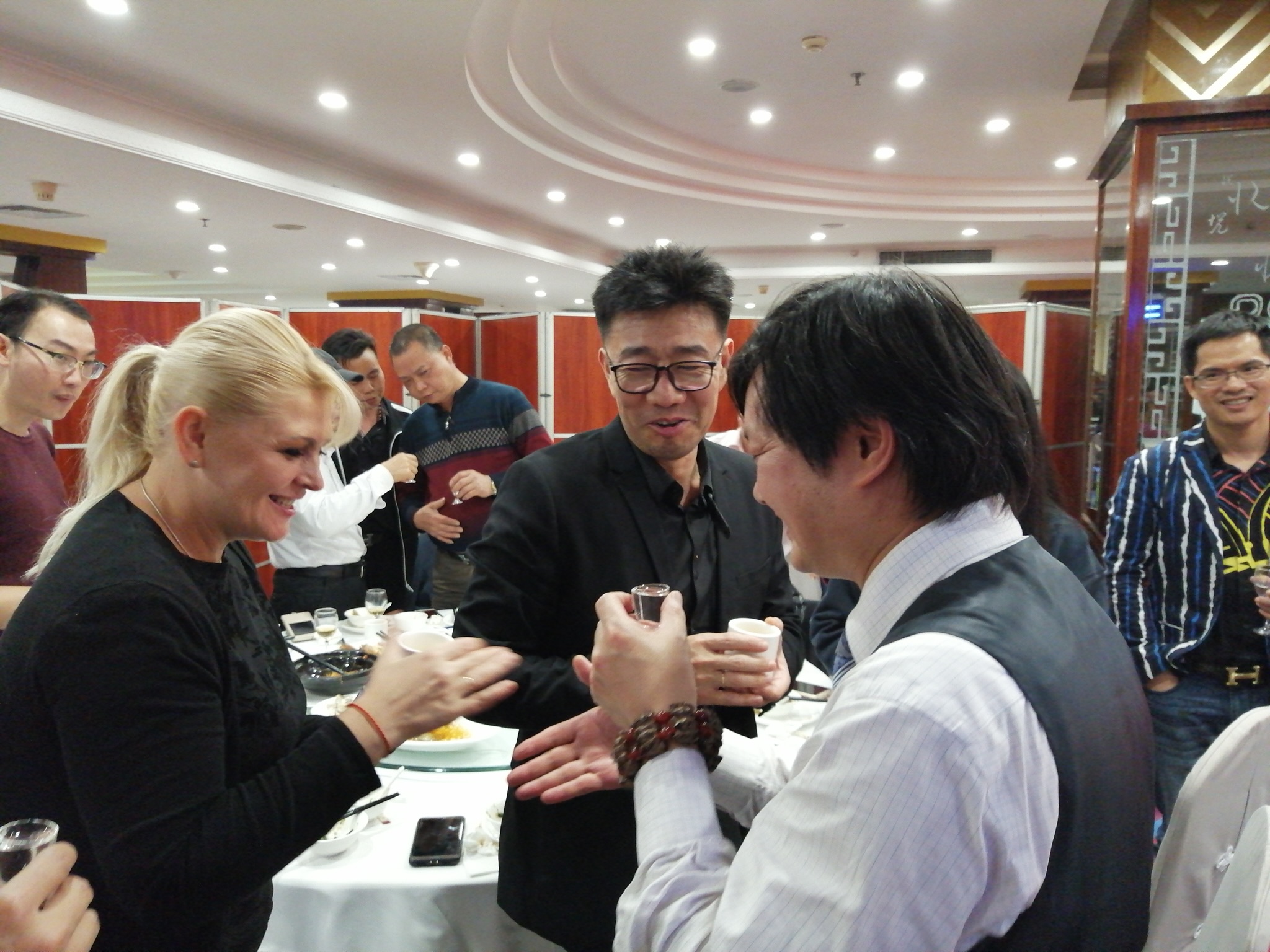 晚宴上,广东省古董文化研究会会长伊有成、广州医科大学原党委书记翁宗亦、中山大学教授钟晓青、澳门法治报副社长刘长生、广东省政协委员许建华、广东省女企业家协会副会长吴淑音、90岁高龄的老艺术家孙老师、乌克兰女艺术家、广州新世纪艺术研究院常务副院长刘玉华、中华时报副社长杨鉴旻等前后登台致辞,畅谈与中华时报和该社社长曾晓辉结缘与交往历程。