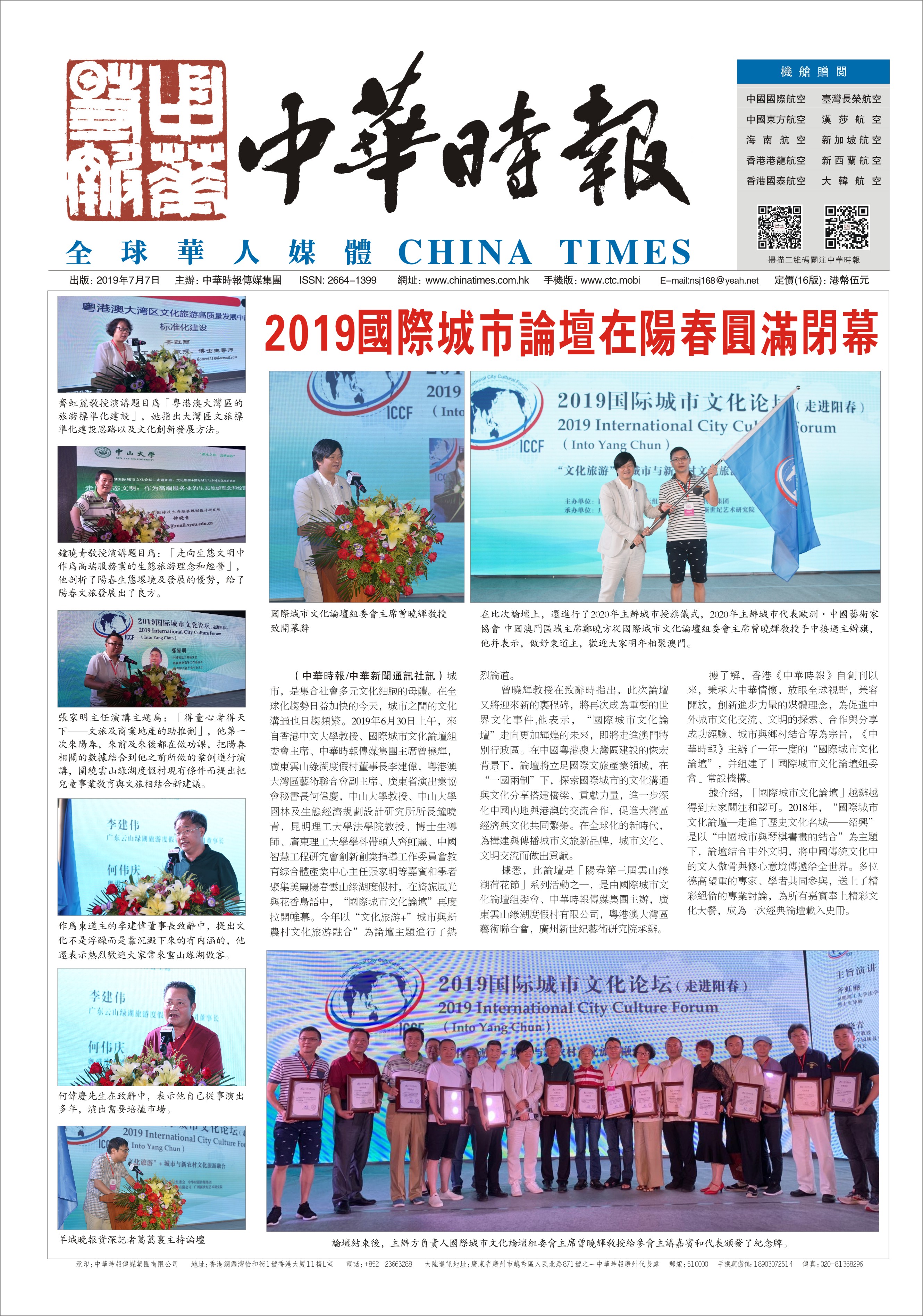 十年历程,“中华时报传媒集团”主办与出席了全球范围各大文化、经济盛会,并主办了“国际城市文化论坛”。以促进中外城市文化交流、文明探索为宗旨,论坛得到全球华人高度关注与认可,先后于2018、2019年在中国绍兴、中国阳春成功举办,并将于2020年走进澳门特别行政区,为国际城市的文化沟通与分享搭建桥梁、贡献力量。