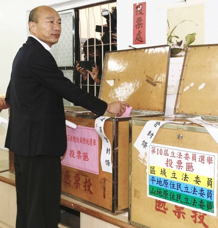另一位候选人国民党的韩国瑜则是现身在高雄市南端林园区的普愿寺投票所,女儿韩冰也一起陪同。但是韩国瑜全程不发一语,投票完后在寺庙参拜即先行离去,不愿表示任何意见。