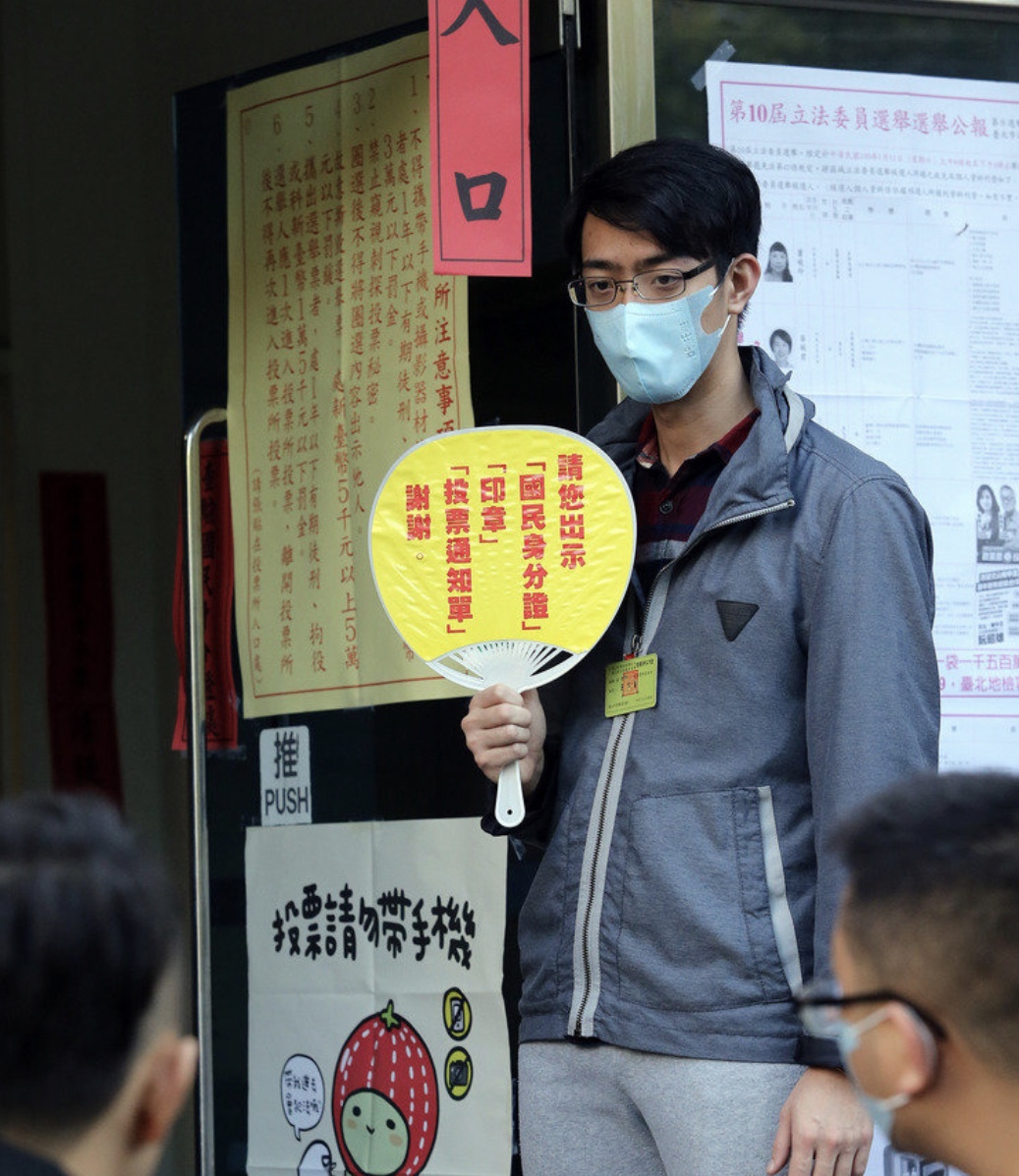 11日早上9时,台湾现任总统蔡英文现身位于户籍所在地新北市中和区的投票所,民众看见她现身,纷纷拿出手机拍照,她也跟着一般选民排队,领票后进去投票。