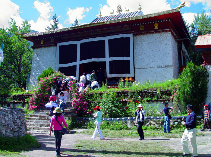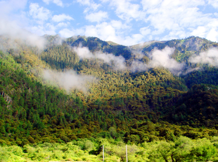 2007年7月31日清晨,记者一行抵达拉萨后的第二天,没有在拉萨市内游览,而是首先安排前往被誉为西藏江南的林芝地区观光。记者所在的团队乘旅游大巴驶离拉萨向林芝方向进发。上午九点四十分,首先抵达藏王松赞干布的出生地做短暂休整。