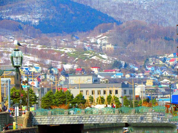 当日下午两点左右,大巴终于抵达了北海道的著名港城小樽。这里从明治至大正时期,曾是北海道经济发展的中心和繁华的商都,被人称为“北方的华尔街”。由于当时海运贸易的发达,小樽运河应运而生。虽然如今小樽运河的实质作用已不复以往,但是却成为小樽观光的名胜,沿岸均是砖石结构的仓库,煤油灯的映照中酝酿出的浪漫异国情调。除此之外,这里专营玻璃制品的哨子店及八音盒等工艺品小店鳞次栉比,其丰富多彩,精美绝伦的各种造型琳琅满目,吸引着海内外游人纷至沓来。