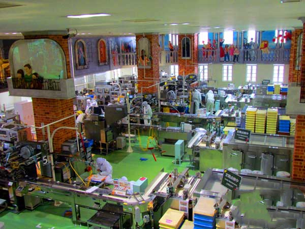 该厂生产的“白色恋人”巧克力夹心饼干,是札幌最有名的点心,1976年开始出售,至今已有38年的历史,到了工厂,团友们不仅饶有兴致地参观了这里的博物馆及白色恋人的生产线,而且有兴趣的还可以亲自动手制作,此中五花八门琳琅满目的巧克力制品,更是令人垂涎欲滴,爱不释手。