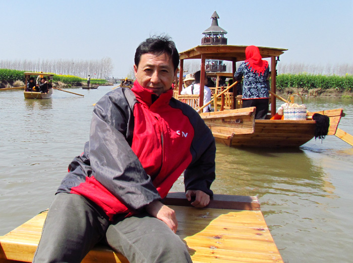 记者在游船上(摄影:梁燕红)