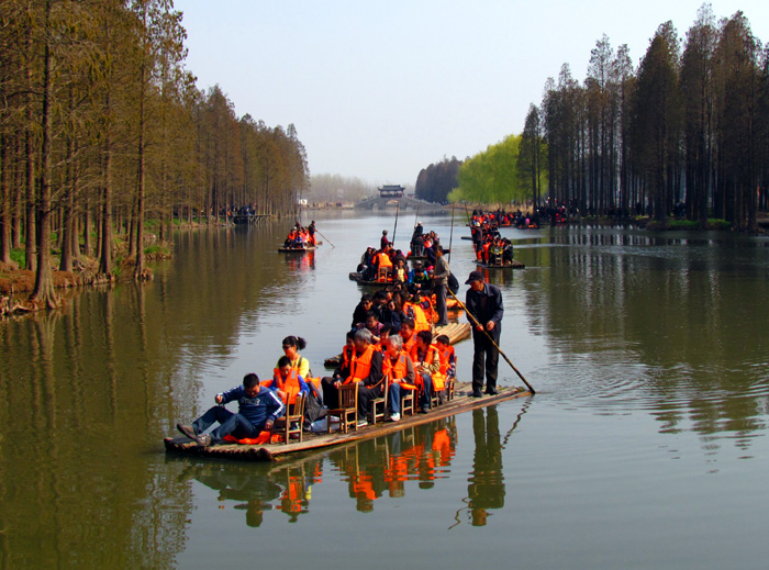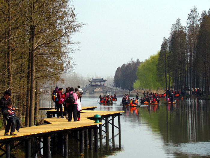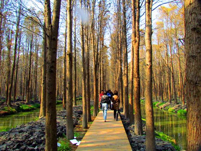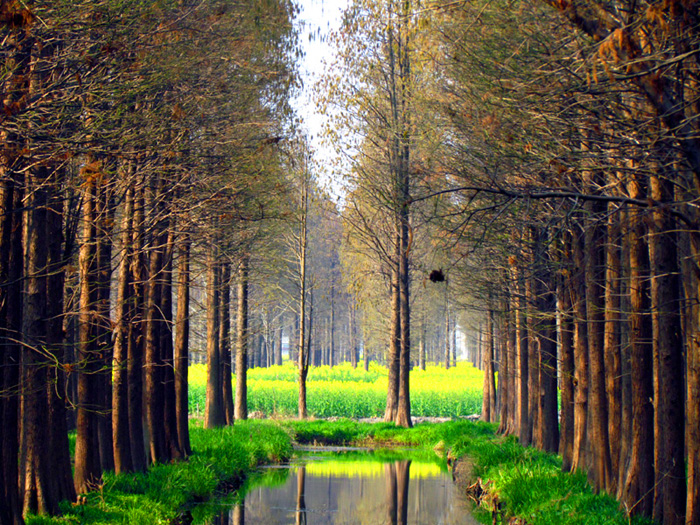 可能是气候原因使然,这里眼下还不是花开最盛的时节,虽说不少的地方已变成了金黄色,但仍有大片的区域处于黄绿之间,这也越发使花海变得更富有层次。车友们江苏自驾之旅的最后一站是前往兴化李中水上森林奇观。李中水上森林公园始建于80年代初期,森林面积1050亩,水面面积500亩,是江苏省最大的水上森林,景区就在“千岛菜花”附近。