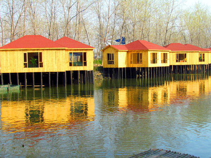 在这里游人既可以坐木筏漂流在森林水道间,还能漫步“水上九寨沟”的“池林栈道”,体验“水面散步”的新奇感受。栈道边还有水中小亭,坐在其中,低头可看水,抬头可观林赏鸟,十分有趣。