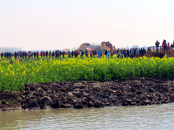 2011年4月4日上午,爱车阳光自驾车队在参加的“第六届中国生态旅游节暨’2011中国姜堰•溱潼会船节”开幕式结束后,离开泰州前往位于兴化市缸顾乡的千岛菜花风景区。当天抵达这里时正值“中国•兴华第三届千岛油菜花旅游节”期间。只见前往这里不宽的小路上已被来自各地的车辆塞满,汽车如蜗牛般地缓慢前行。抵达风景区后依然人流如织。