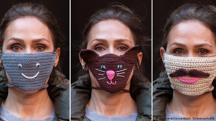 笑容不能丢! 艺术家穆萨·弗里德里西(Mansha Friedrich)用钩针编织的口罩造型别致。自制的口罩上有着笑脸,动物或者太阳的图案。这位来自汉诺威的艺术家想保持好心情。