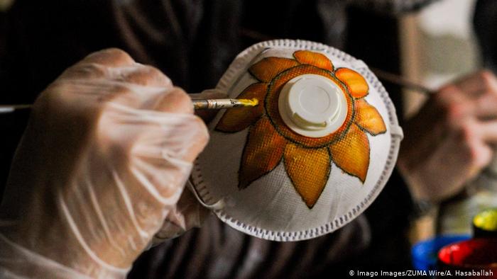 加沙地带的艺术 在人口稠密的加沙地带,艺术家们试图用自己的方式给人们带来活力,比如在口罩上手绘图案。政府限制居民外出,禁止举办集会活动。一年一度在以色列边境举行的“回归大游行”也于今年取消。