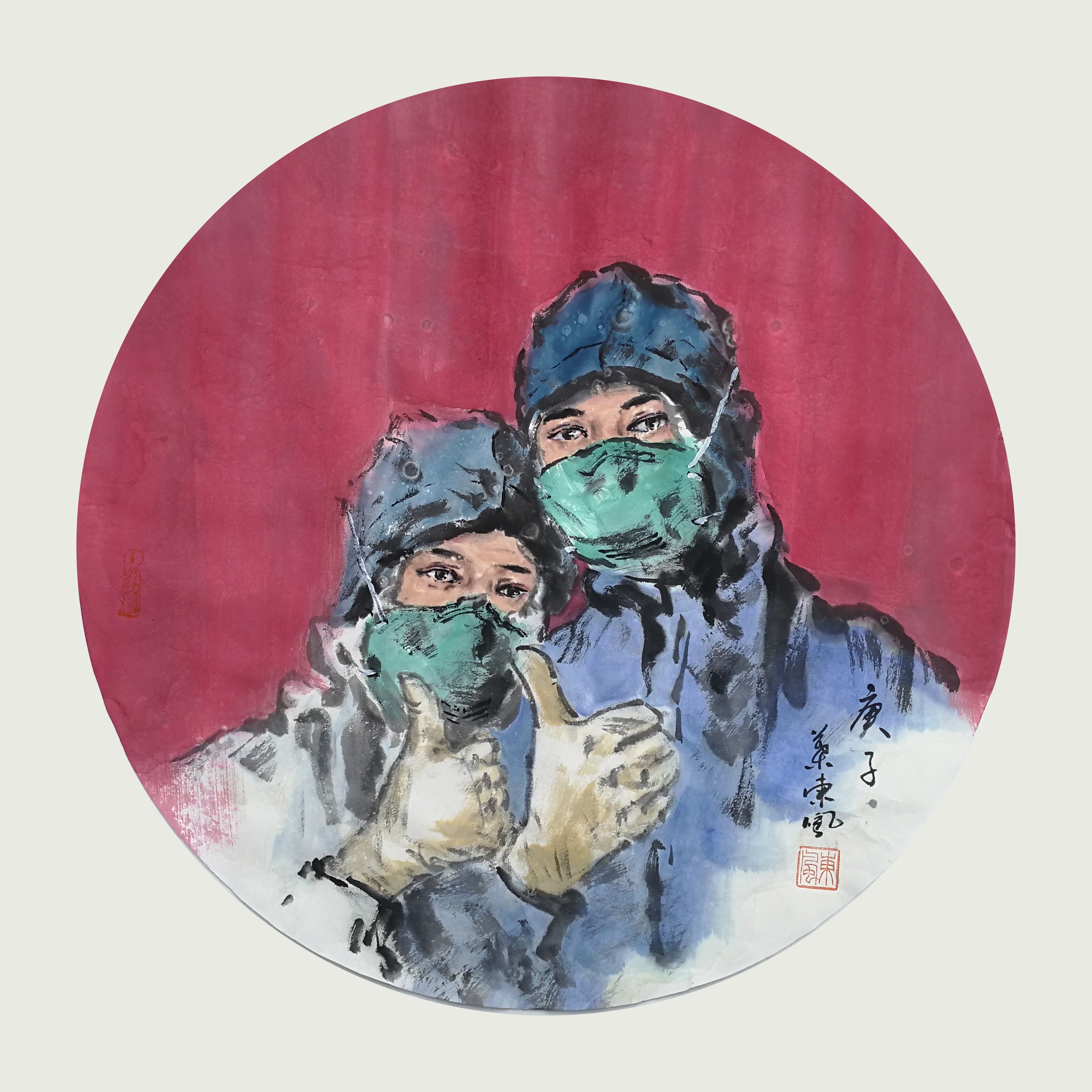 作品说明:《最美逆行者》组画,国画作品,尺寸600mmX600mmX4幅;创作时间:2020年2月;面对新冠疫情,全国人民打响疫情防控阻击战。一封封请战书、一枚枚红手印、一声声誓言、一个个“最美逆行者”,凝聚众志成城抗疫情的强大力量。“沧海横流,方显英雄本色。”在这个紧急关头,中华儿女再一次诠释了一方有难、八方支援的民族情怀。