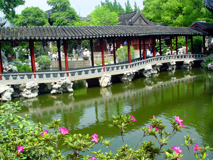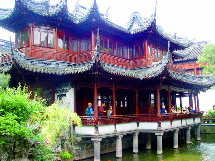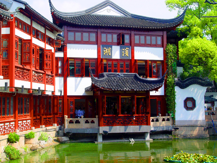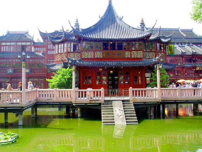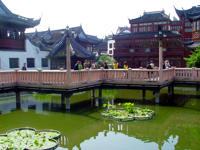 所以说来豫园,首先要穿过几道热闹非凡的商街,之后你就会有柳暗花明又一村的发现。豫园前那典雅、别致的九曲桥,与湖心亭相依相伴成为上海的标志之一。游人行走在桥上弯来拐去、斗折蛇行、移步换景。