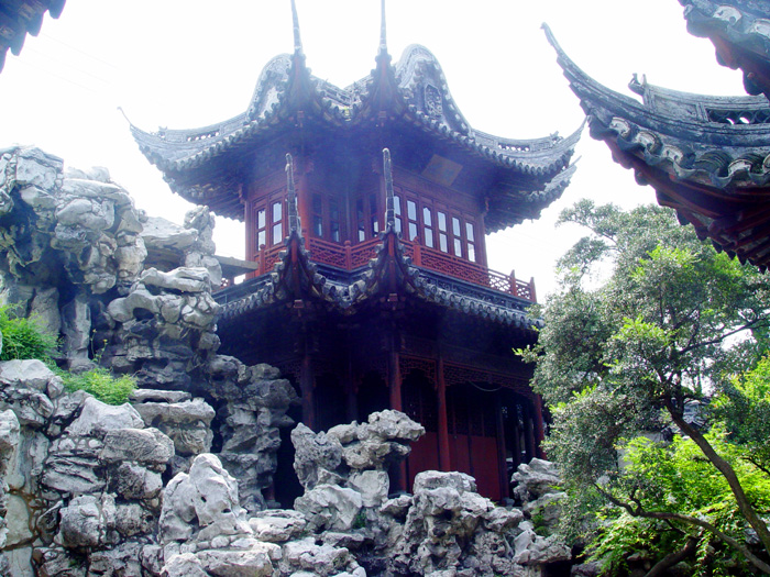 豫园内有一座颇有名气的大假山,高约10米,用约2000吨浙江武康黄石队彻而成。这是明代造园高手张南阳的创作。块块顽石堆彻的自然,层峦叠嶂,洞壑深邃,使游人有如进入深山。既可远望,又可近观。