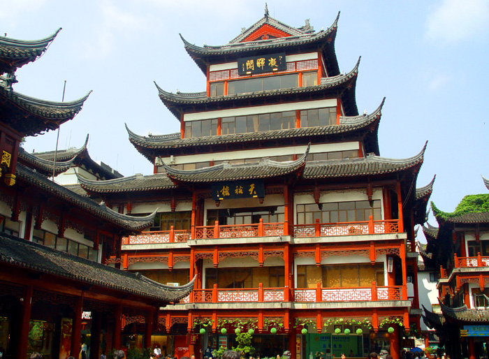 上海的豫园是与老城隍庙连在一起的。充满了浓郁民族风情的老城隍庙,是上海的又一处著名旅游景点,这里一座座具有明清风格的楼宇间,各种琳琅满目的小商品令人目不暇接,一声声热情的叫卖声不绝于耳。老城隍庙的小吃源远流长、久负盛名。到了中午吃饭时间,和丰楼里的小吃广场几乎座无虚席,广式蒸点、蟹粉生煎、三鲜豆皮、面筋百面、香辣蟹、串烧等各种特色小吃多达500种,全都采用自助形式销售,十分方便。
