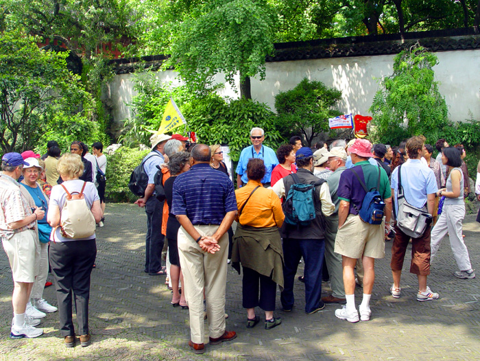 如果来上海是一定要来豫园看一看的,作为上海的著名园林,虽然它居于闹市,面积只有2万多平方米,但由于设计巧妙,布局曲折有致,闹中取静,因此成为海内外旅游者们一直向往的旅游胜地。记者记不清已经是第几次来上海了,但来豫园却记忆深刻,记得上世纪的1992年11月13日记者来参加“第四届上海电视节”期间首次光顾此地。转眼13年后的2005年5月18日,当记者第二次来豫园时萌发了应写篇游记才不虚此行的想法,于是,观赏游览后欣然做了如下的记载。