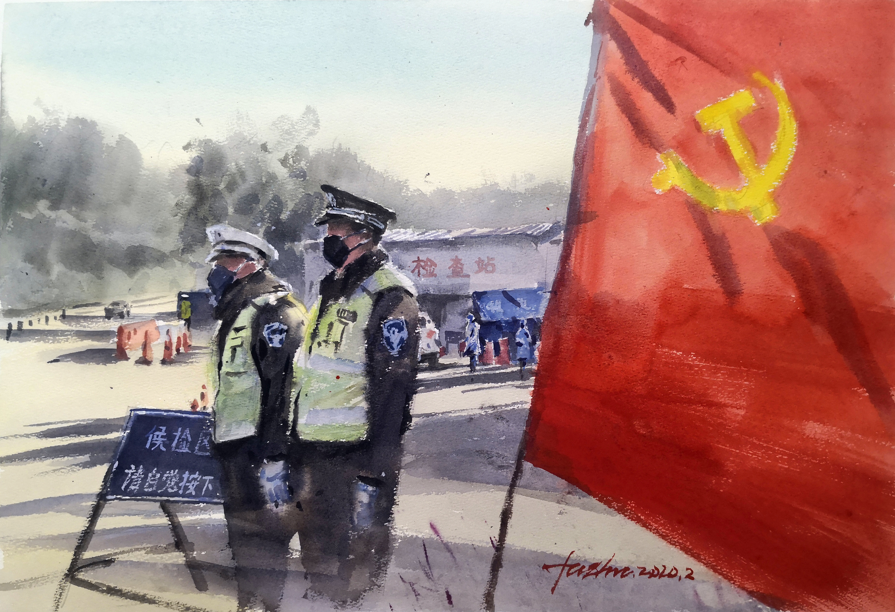 线上抗疫主题国际艺术作品展:谢发树–水彩画《公安抗疫一线组画》