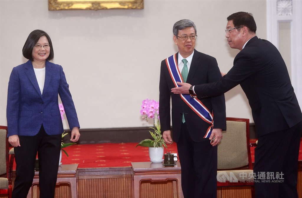 (中華時報台灣訊)蔡英文今天頒授中山勳章給即將卸任的副總統陳建仁,肯定他任內的付出。蔡總統也允諾未來4年,她會繼續努力,用勇氣和謙卑服侍人民,讓台灣成為更好的國家。