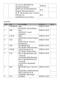 其他國家方面,包括德國、丹麥、捷克、斯洛伐克、英國等國會副議長;日本、印度、韓國、德國、法國、義大利、波蘭、捷克、立陶宛、拉脫維亞、加拿大等國友台議員;印尼、丹麥等前國家領導人錄影道賀。在台灣擁有高人氣的布拉格市長賀瑞普(Zdeněk Hřib)也入鏡。