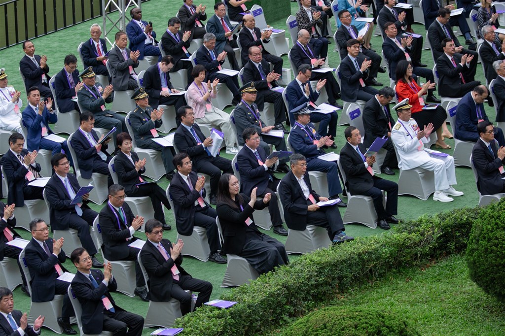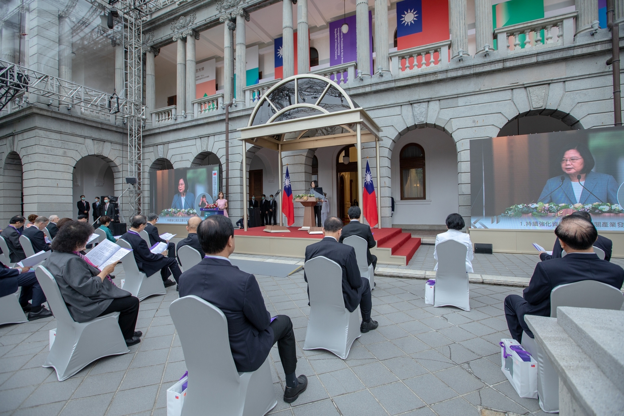 (中華新聞通訊社/中華時報訊)這是一場很不一樣的總統就職典禮。基於防疫考量,總統府早早宣布取消大型活動,中華民國第15任總統蔡英文的就職演說改在台北賓館戶外舉行,僅邀請駐台使節、官員等少數人員參加。因為在戶外,保持社交距離就座觀禮的來賓不必戴口罩,鏡頭捕捉到他們的笑容、表情,台灣疫情漸趨緩和,大家總算能稍微喘口氣了。