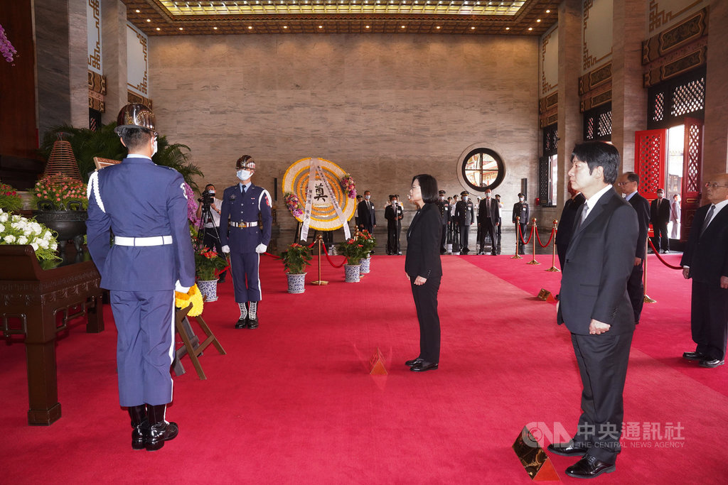 (中華新聞通訊社/中華時報訊)蔡英文總統、賴清德副總統昨天就任中華民國第15任總統、副總統。今天上午他們赴忠烈祠,向國父暨忠烈殉職人員致祭,五院院長陪同。