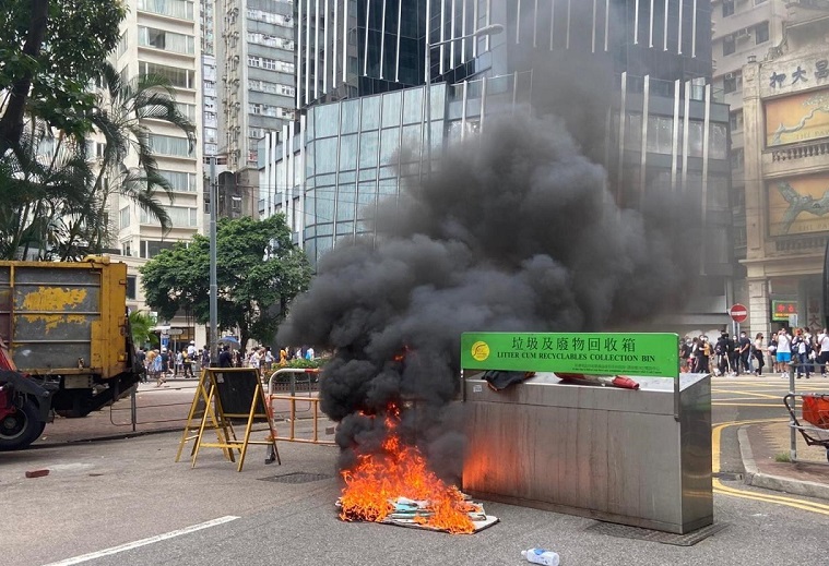警方說,中午12時起,大批人士在銅鑼灣及灣仔集結,作出違法暴力行為,闖入仍有車輛行駛的馬路及堵路,大量汽車被逼停下受困或需掉頭離開;又指有人乘機縱火焚燒雜物,涉嫌從大廈天台投擲玻璃樽,危及附近市民及商戶的安全。