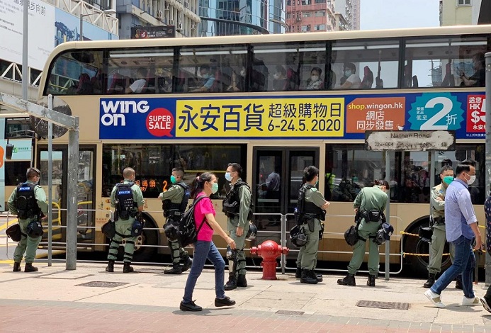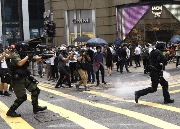 (中華新聞通訊社/中華時報香港訊)港府計劃今日(27日)於立法會大會恢復《國歌條例草案》二讀辯論,有網民今日號召多區堵路,反對港區國安法及國歌法,警方加強警力佈防。其中在中環有市民聚集,期間有人行出馬路,警方一度舉起藍旗警告,並發射多輪胡椒彈球槍驅趕。消息指,警方至今於多區共拘捕約300人。