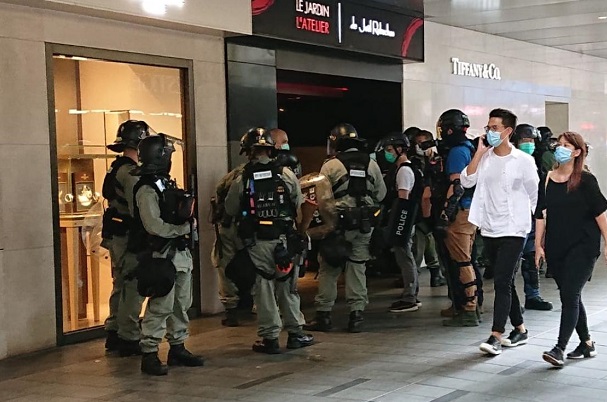 专题港澳港版國安法香港 中環置地廣場有市民聚集叫口號 防暴警員商場外戒備 由 中華時報總編室 - 2020年5月28日 一批巿民午飯時間響應網上號召,到中環置地廣場的商場中庭,高叫「光復香港,時代革命」等口號,參與的市民大致企滿圍欄位置,現場又播放反修例歌曲,到接近下午2時宣布快閃行動結束,部份人士散去。 期間商場多名保安員,手持告示提醒保持社交距離。 商場外大批防暴警察戒備,又截查部份巿民,商場對面亦有多輛警車停泊。