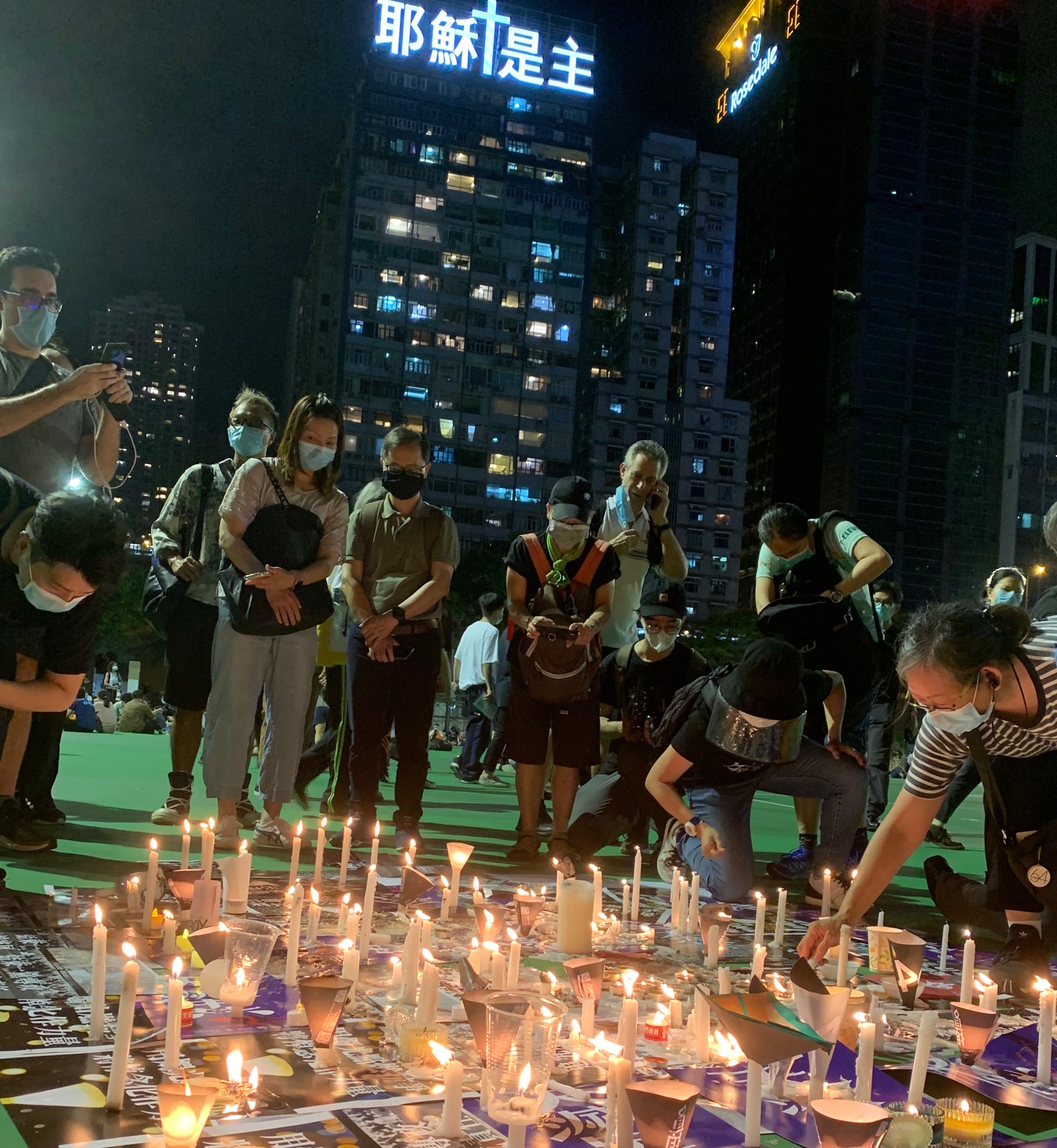 在旺角、大角咀及屯门等地,都有人聚集,燃点烛光。