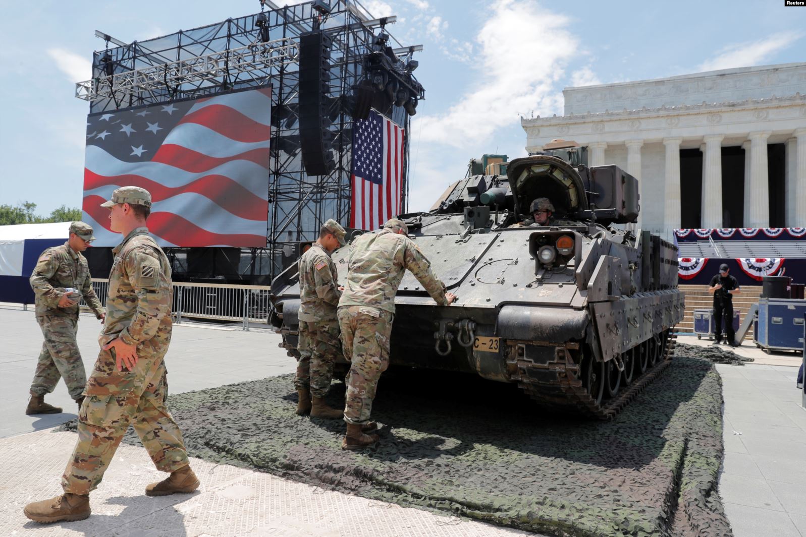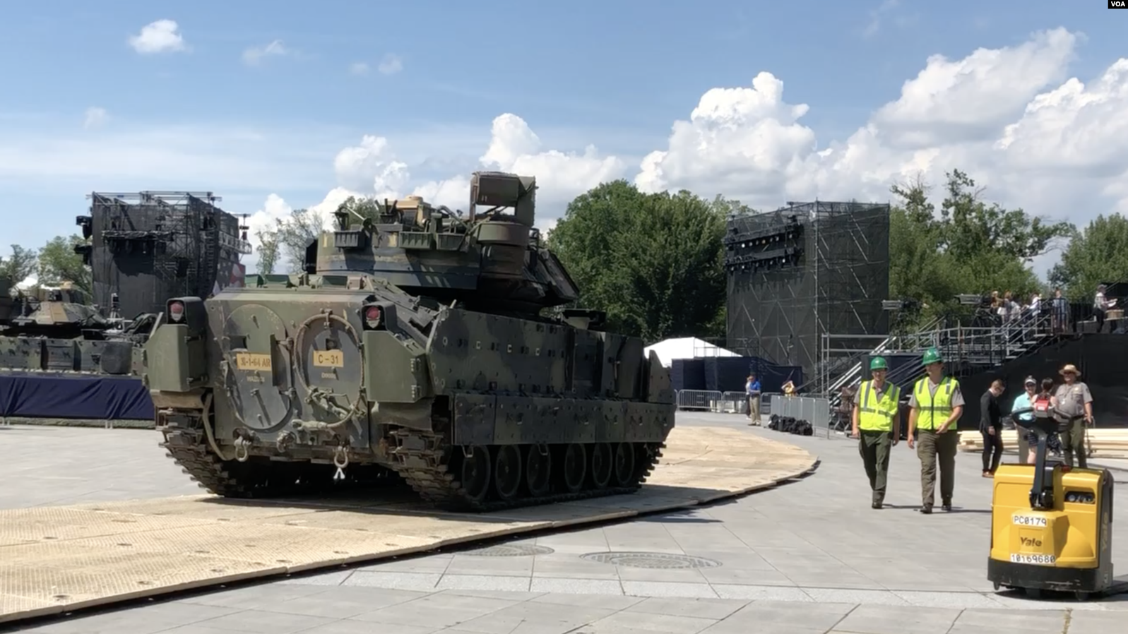 批评人士担心,沉重的战车有可能破坏国家大草坪及附近区域的基础设施。此外,在2020年总统竞选已经紧锣密鼓地展开之际,一些历史学者担心特朗普总统会把党派政治注入今年的节庆活动。