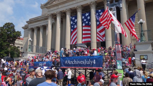 独立日庆祝美国在1774年7月4日宣布脱离英国而独立建国。在首都华盛顿,每年的假日都会吸引几十万人聚集在国家大草坪,观赏一场音乐会和盛大的烟火。