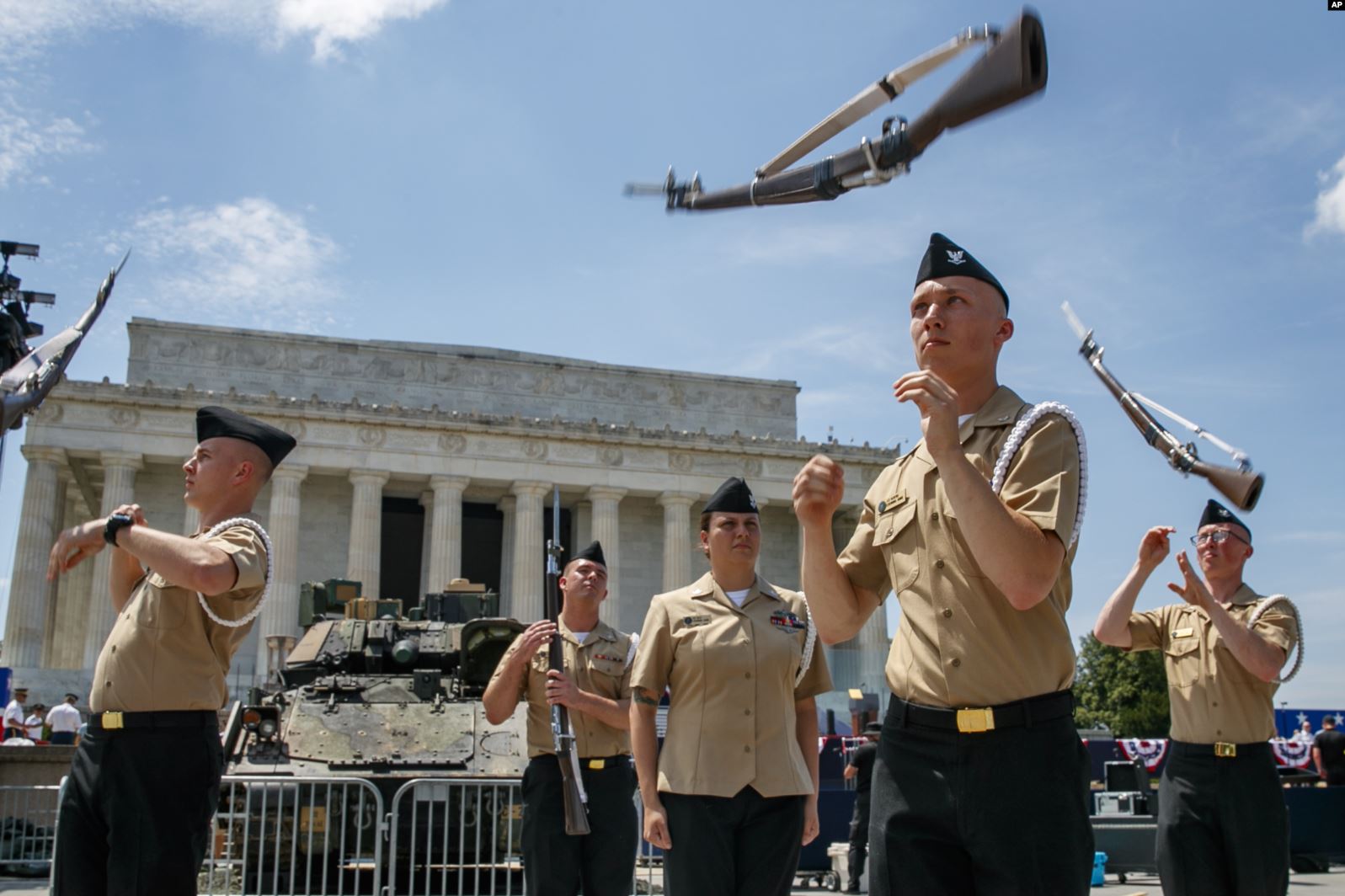 今年,特朗普宣布增加“向美国致敬”(Salute to America)活动,凸显美国军力,并亲自在林肯纪念堂的台阶上发表讲话。