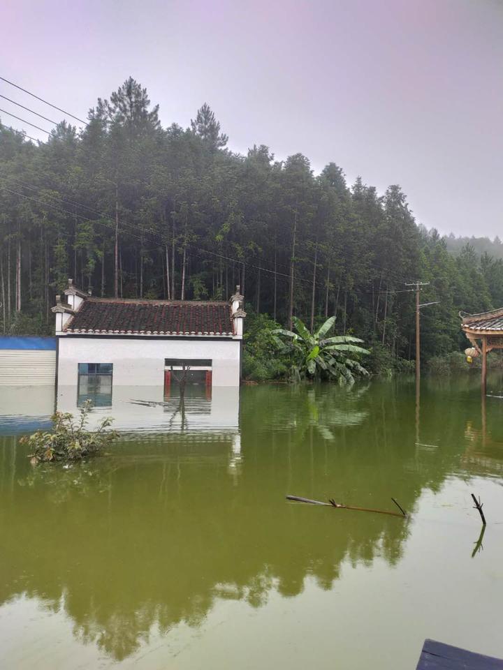 中华时报记者王之发自鄱阳县赣皖交界处的莲花山国家森林公园照片,显示该公园受灾严重成一片汪洋。