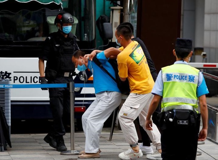 7月26日成都美领馆外围观美方人员撤离的成都群众 © REUTERS – THOMAS PETER摄影