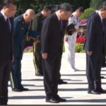 兩岸大陆 習近平率黨和國家領導人出席紀念抗戰勝利75周年儀式 由 中華時報總編室 - 2020年9月3日 今日是中國人民抗日戰爭勝利紀念日。中共總書記、國家主席習近平率領6名政治局常委,以及久未露面的國家副主席王岐山等黨和國家領導人,向抗戰烈士敬獻花籃,紀念二戰及抗日戰爭勝利75周年。 儀式早上10時在中國人民抗日戰爭紀念館舉行,以國家名義向抗戰烈士致敬,習近平等人身穿黑色西裝進場,向抗戰生還者致敬。 獻花儀式由北京市委書記蔡奇主持,現場先奏唱國歌,眾人再向犧牲的烈士默哀,並舉行獻花籃儀式,抗戰烈士的親人和家屬、解放軍海陸空三軍代表、北京各界代表亦有出席。