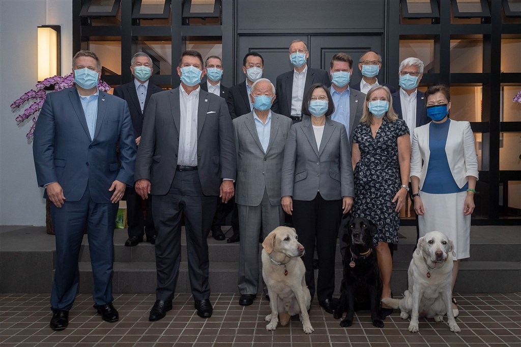 總統蔡英文18日晚間於官邸宴請美國國務院主管經濟成長、能源與環境次卿柯拉克(Keith Krach)代表團,一張兩人和台積電創辦人張忠謀的合照,成為焦點。