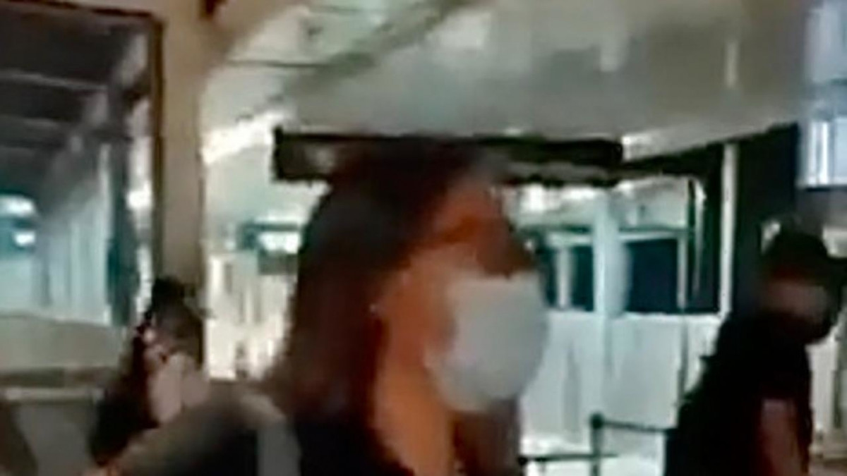 2020年9月26日,一群不明人士冲入港大捣毁连侬墙,其中一名动粗女人得手后撤退时,犹在斥骂旁人。(港大学生会面书网页) © 港大学生会面书网页