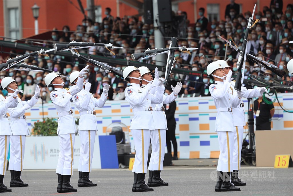緊接由國防部365名聯合樂儀隊成員帶來「捍衛國家,守護人民」組曲演奏及花式操槍,上半場,由樂隊演奏「海風進行曲」及自創曲「見疫勇為」等兩首曲目,並由儀隊操演「民主先鋒隊形」、「永恆守護隊形」、「萬眾一心隊形」及「勇敢前進隊形」。