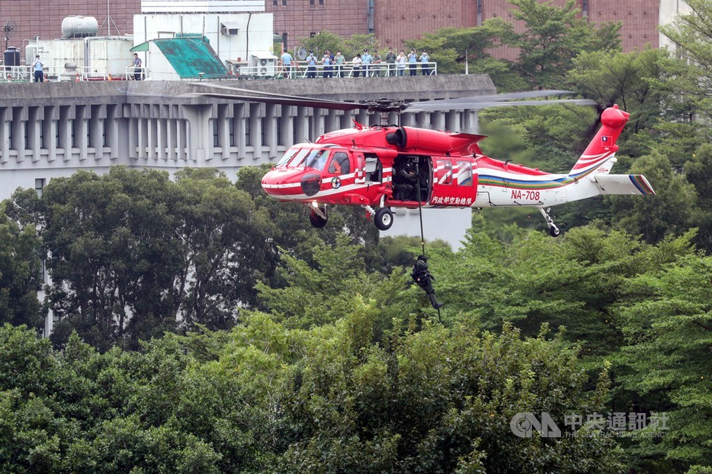 黑鷹直升機是美國西科斯基公司生產的雙渦輪軸引擎、單旋翼直升機,是從S-70型發展而來的一種中型通用或攻擊直升機。主要特色是在高海拔與海上救災、救難、救護、觀測、偵巡、運輸等任務,可裝載15名人員(含飛行員2員、機工長2員、搜救員2員)或救護擔架4具。