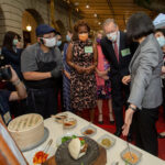 會場設有盛橋刈包、菓實日及N-Ice Taipei等知名美食攤位,總統也與使節團團長暨聖克里斯多福及尼維斯駐臺大使哈菁絲(Jasmine Elise Huggins)、美國在台協會台北辦事處處長酈英傑(William Brent Christensen)伉儷等一同參觀攤位,聽取紅蔥滷肉飯刈包、「紅龜」等特色美食介紹,亦親自製作客家擂茶雪花冰。