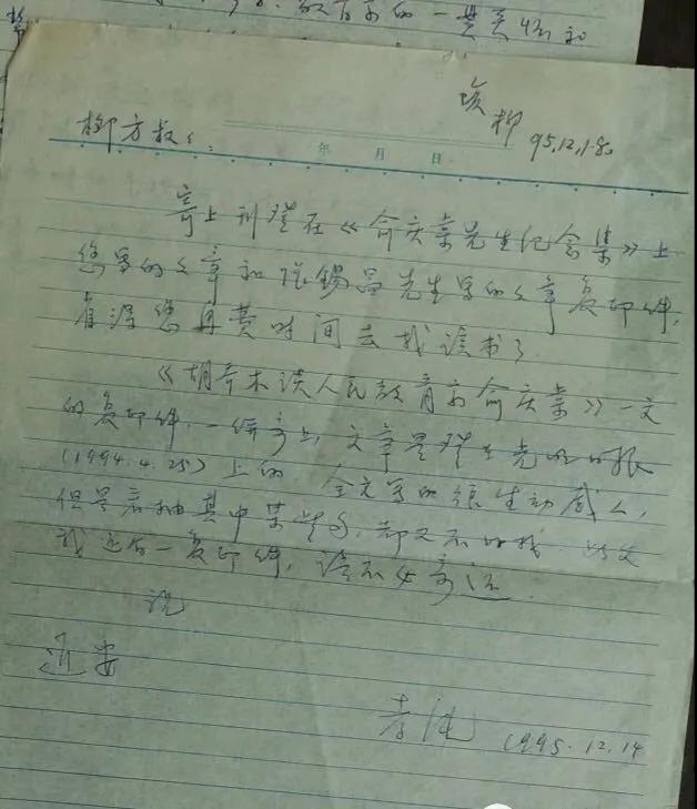 1999年12月12日,唐孝纯致吴聿明的信,其中提到“俞凤宾的幼子俞佾文(国家建工局重大项目基建专家总工程师)”。(注:俞凤宾、俞颂华、俞庆棠三兄妹,唐孝纯是俞庆棠的长女,我是俞颂华的长孙,俞庆棠是我的姑奶奶。)